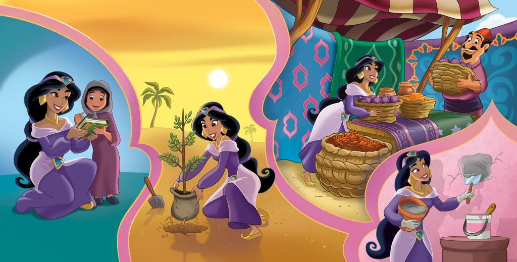 I’ve been working with Penguin Random House on a Disney Princess seasonal series of books. The first to release was Disney Princess, A Special Spring! Next up will be Fall Fun! which has already been announced online, but the cover art is not live online just yet. When it is, I’ll be sure to share it. Below are the page art spreads without text from ‘A Special Spring!’