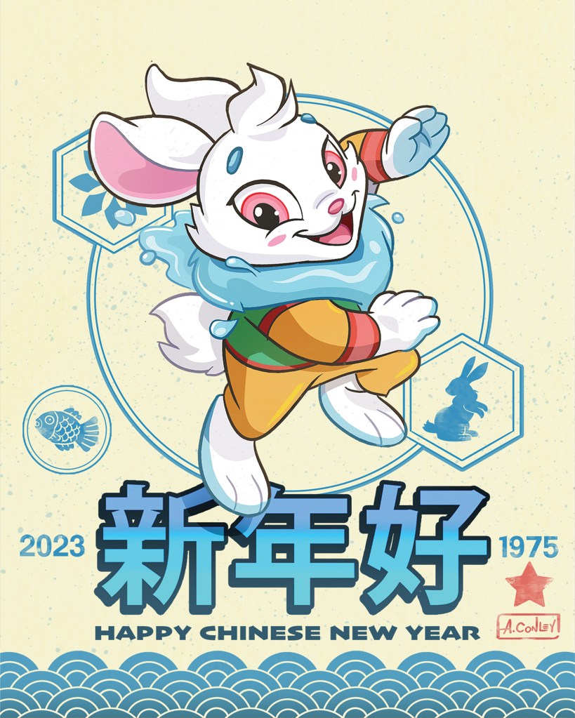 In the Chinese Zodiac my birth year, 1975 is the year of the Rabbit – 2023, is also the year of the rabbit and more specifically, the water rabbit! Happy Chinese New year 🧧 🐇 The character in the image is Cybunny. I designed the character when I worked for Neopets.com in 2000. I thought it would be a fitting tie in for this illustration! 🐰