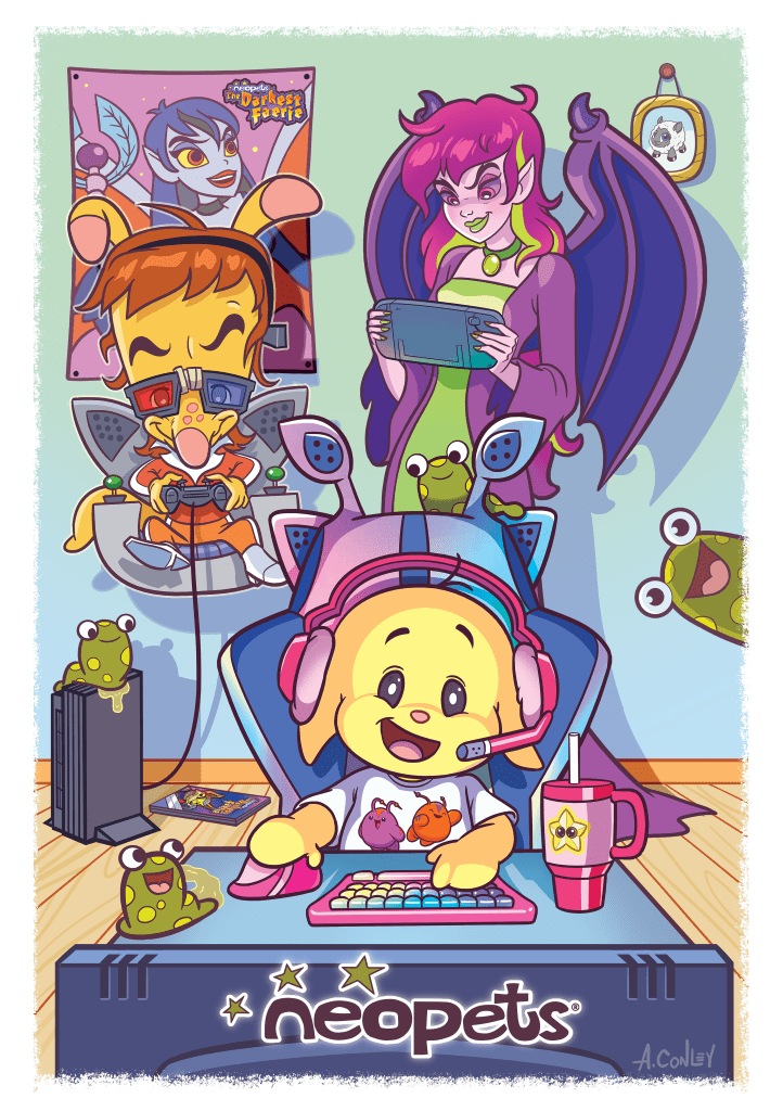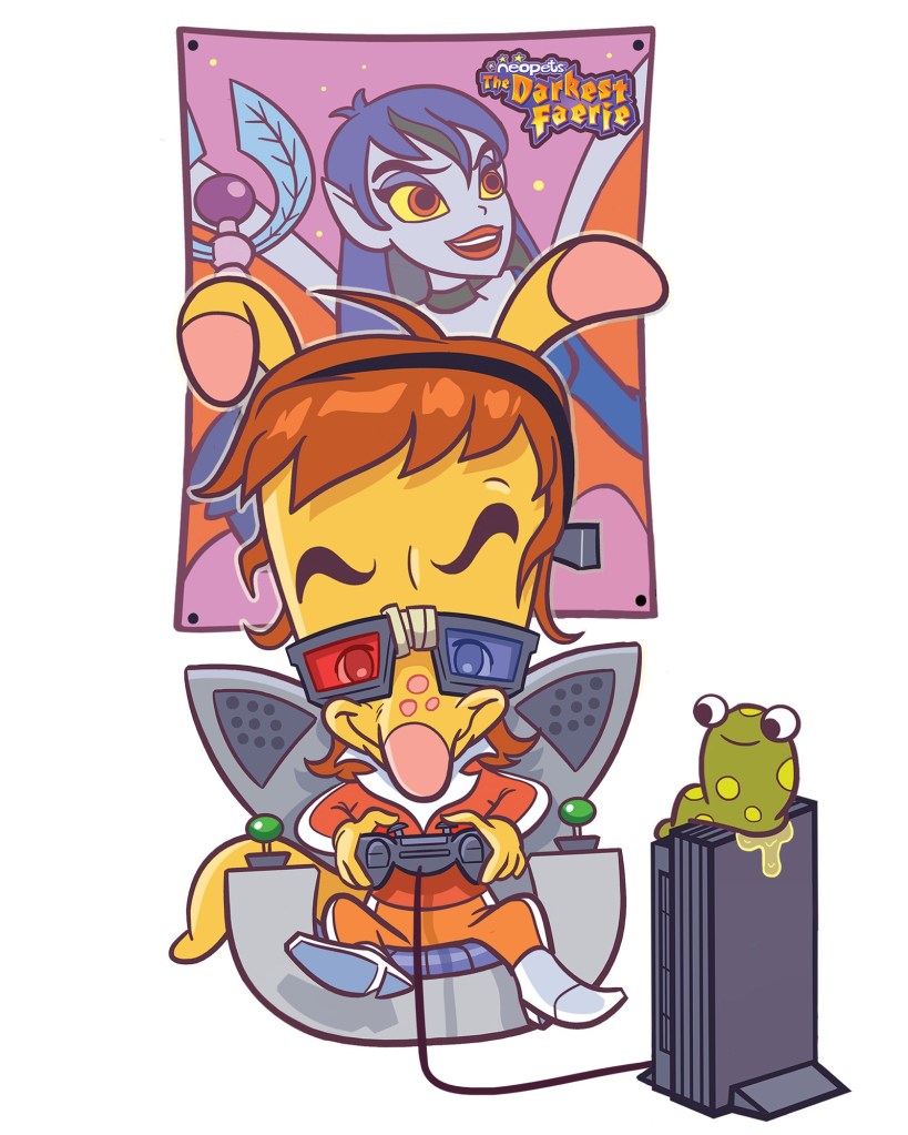 Pax East is a four day event dedicated to gaming experiences. I created original artwork for Neopets which will be sold at the Expo at the Neopets Booth. There will be posters, tote bags and other merch featuring this art.