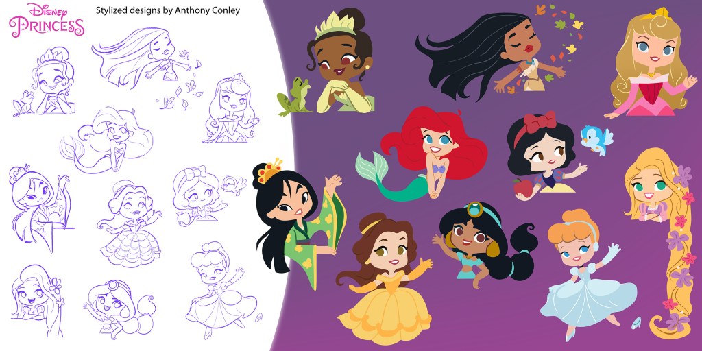 Welcome to my page. I’m a digital artist specializing in licensed illustration and working as a contractor for many years now for top tier companies; Disney, Netflix, Nickelodeon, DC Warner Bros., Dr. Seuss , Neopets and Sesame Street to name a few. Here you’ll find my professional projects for Disney Princess books with Penguin Random House, Disney themed personal projects and some other fun creative work I’ve done for Love Pop greeting card company. Enjoy!